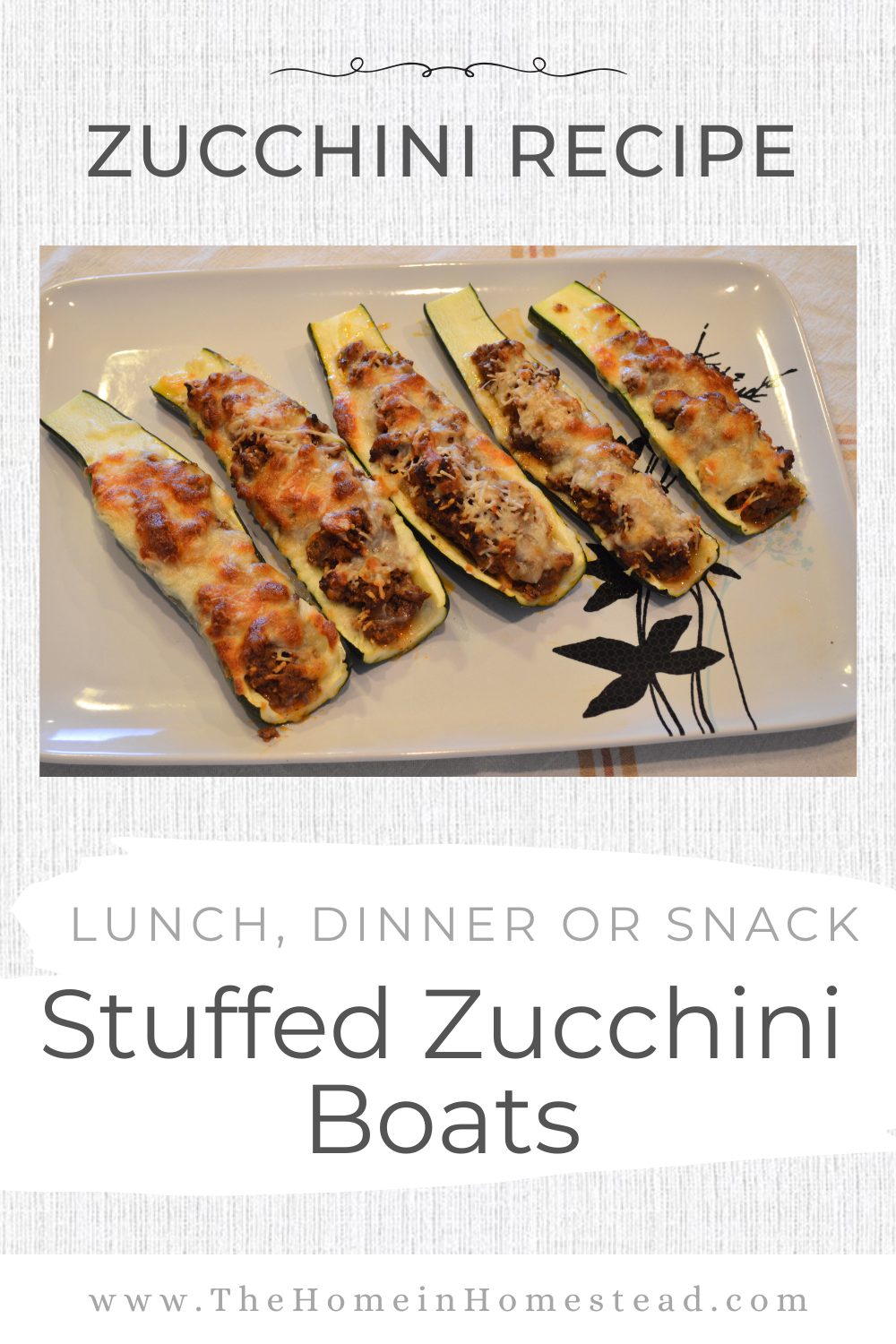 Today we will be going over What to do With All That Zucchini – Part Seven. How to make Stuffed Zucchini Boats. Follow along and see how to make these savory tomato & meat sauce filled zucchini boats that have a yummy cheesy topping to them! By combining zucchini cut in half to create little boats & topping them with this combination of ground beef, tomato sauce, herbs & spices and cheese, you end up with a flavorful meal, appetizer, snack or side dish. They’re also perfect for game day!